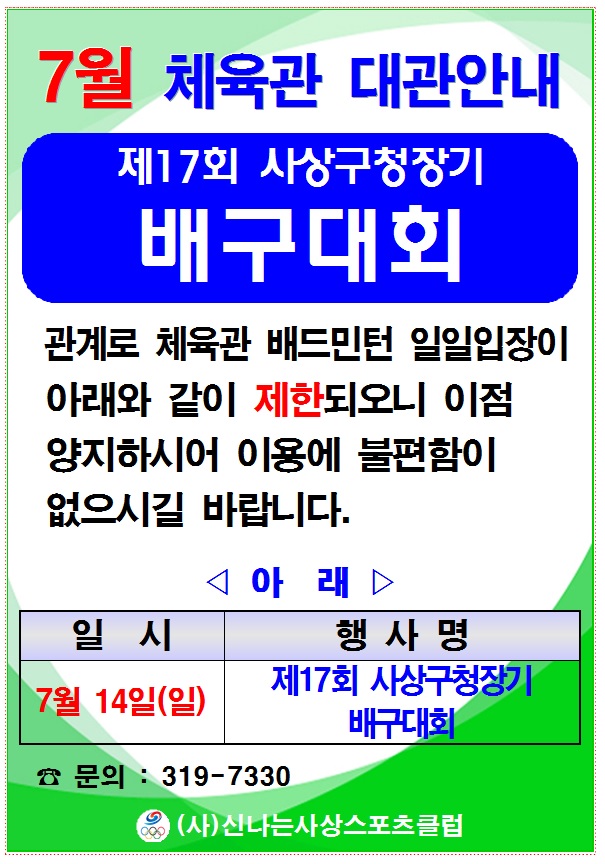 7¿ù 14ÀÏ(ÀÏ) üÀ°°ü ´ë°ü ¾È³» |